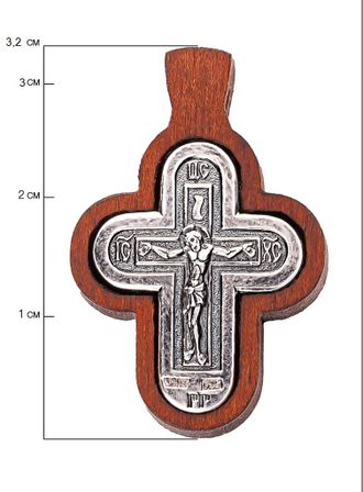 Крест нательный православный, груша, мельхиор, серебрение. Крест сделан из благородного и твердого дерева - груши, пропитан маслом и церковными благовониями по нашему оригинальному рецепту. Металлическая вставка изготовлена из мельхиора и покрыта серебром.