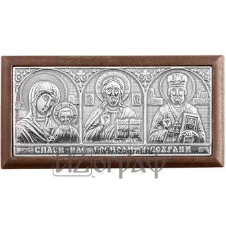 Автомобильная икона триптих "Богоматерь Казанская, Спаситель, Николай Чудотворец"