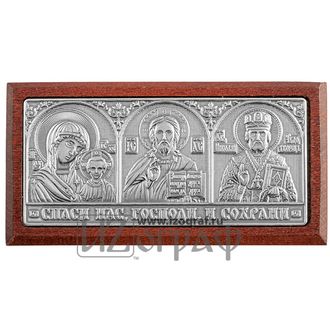 Икона автомобильная, триптих, мельхиор, серебрение, дерево бук, на двухстороннем скотче (№05)
