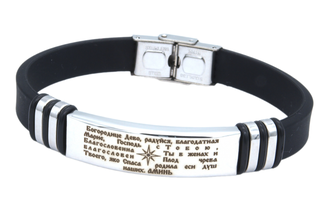 Браслет силиконовый, с гравировкой "Богородица…", чёрный. Номер 05