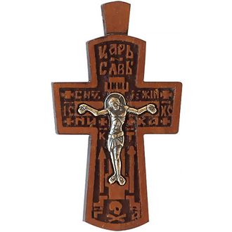 Крест нательный православный, груша, серебрение. Крест сделан из благородного и твердого дерева - груши, пропитан маслом и церковными благовониями по нашему оригинальному рецепту. Металлическая вставка изготовлена из мельхиора и покрыта серебром.