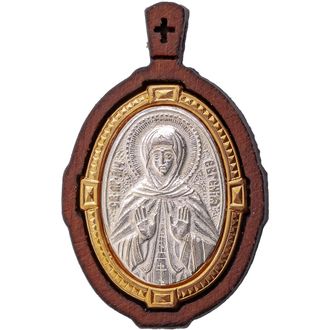 Именная нательная икона Святая Преподобномученица Евгения Римская. Груша, мельхиор, серебрение, чернение