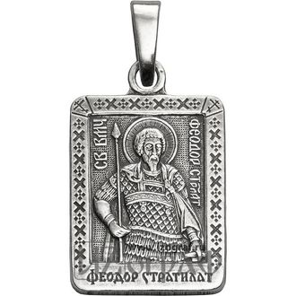 Именная нательная икона Святой Великомученик Феодор Стратилат. Икона изготовлена из мельхиора и покрыта чистым серебром (12 мкм).