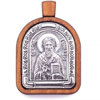 Именная нательная икона Святитель Геннадий Архиепископ Новгородский. Иконка (образок) сделана из благородного и твердого дерева - груши, пропитана маслом и церковными благовониями по нашему оригинальному рецепту. Металлическая вставка изготовлена из мельхиора и покрыта серебром с чернением.