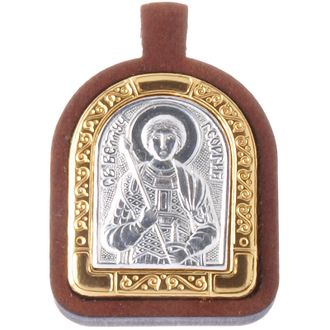 Именная нательная икона Святой Георгий Победоносец. Груша, мельхиор, серебрение, золочение