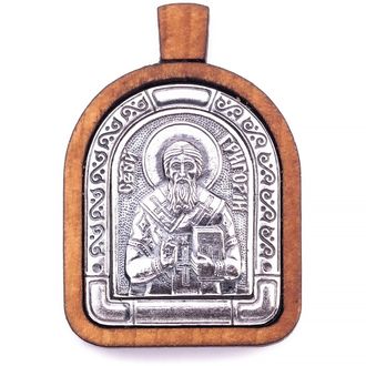 Именная нательная икона Святитель Григорий Палама Архиепископ Фессалоникийский. Иконка (образок) сделана из благородного и твердого дерева - груши, пропитана маслом и церковными благовониями по нашему оригинальному рецепту. Металлическая вставка изготовлена из мельхиора и покрыта серебром с чернением.