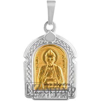 Именная нательная икона Святой Благоверный Великий Князь Игорь Ольгович Черниговский. Икона изготовлена из мельхиора и покрыта чистым серебром (12 мкм) и золотом (0,5 мкм).