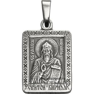 Именная нательная икона Святой Равноапостольный Кирилл, Учитель Словенский. Икона изготовлена из мельхиора и покрыта чистым серебром (12 мкм).