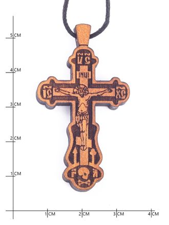 Крест сделан из благородного дерева - груши, пропитан маслом и церковными благовониями. Крест не боится воды и высокой температуры. Лик на кресте изображён с помощью лазерной гравировки.