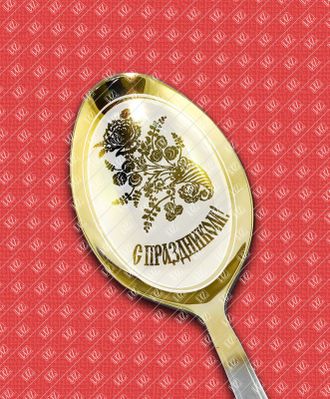 Ложка чайная, с гравировкой, "С Праздником!", черпак золотой титан