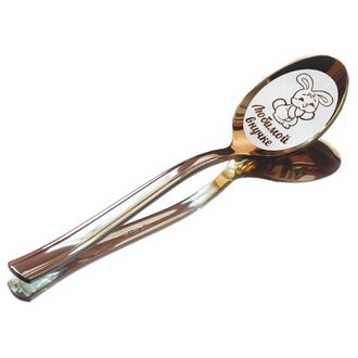 Ложка чайная, с гравировкой, "Любимой внучке", черпак золотой титан