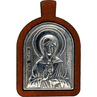 Именная нательная икона Святая Матрона Московская. Иконка (образок) сделана из благородного и твердого дерева - груши, пропитана маслом и церковными благовониями по нашему оригинальному рецепту. Металлическая вставка изготовлена из мельхиора и покрыта серебром с чернением.