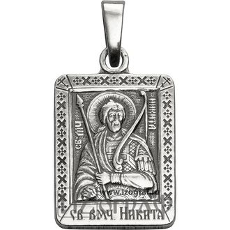 Именная нательная икона Святой Великомученик Никита Готфский. Икона изготовлена из мельхиора и покрыта чистым серебром (12 мкм).