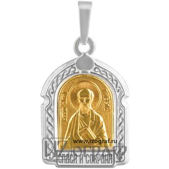 Именная нательная икона Святой Первоверховный Апостол Павел. Икона изготовлена из мельхиора и покрыта чистым серебром (12 мкм) и золотом (0,5 мкм).