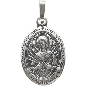 Именная нательная икона Божией Матери Семистрельная. Икона изготовлена из мельхиора и покрыта чистым серебром (12 мкм).