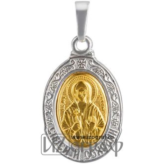 Именная нательная икона Святая Мученица София Римская. Икона изготовлена из мельхиора и покрыта чистым серебром (12 мкм) и золотом (0,5 мкм).