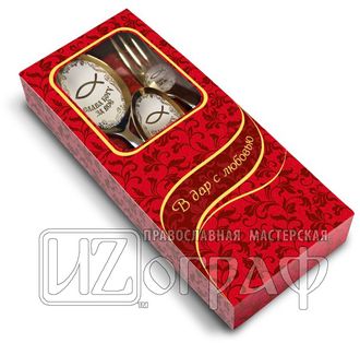 Набор подарочный, столовый, три предмета с гравировкой "Слава Богу за всё"