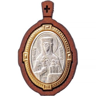 Именная нательная икона Святая Благоверная Царица Грузии Тамара Великая. Груша, мельхиор, серебрение, чернение