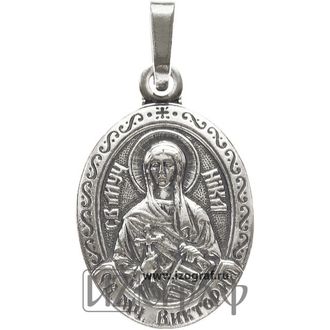 Именная нательная икона Святая Мученица Ника (Виктория) Коринфская. Икона изготовлена из мельхиора и покрыта чистым серебром (12 мкм).