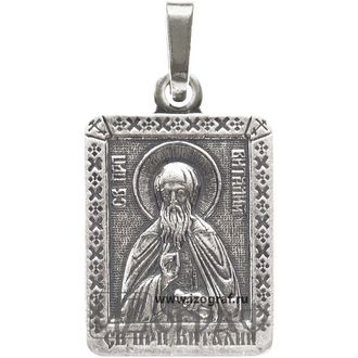Именная нательная икона Святой Преподобный Виталий Александрийский. Икона изготовлена из мельхиора и покрыта чистым серебром (12 мкм).