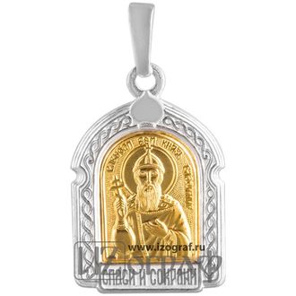 Именная нательная икона Святой Равноапостольный Великий Князь Владимир. Икона изготовлена из мельхиора и покрыта чистым серебром (12 мкм) и золотом (0,5 мкм).